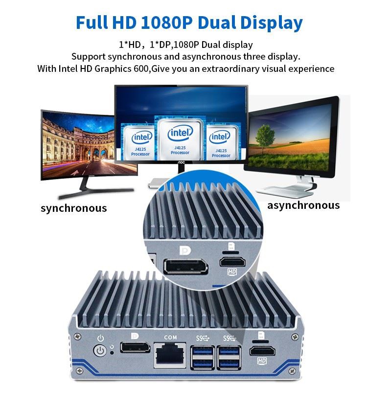 Processore | Intel Celeron J4125 integrato(Filettatura quad core quad,4 MB Cdolore,2.0GHz,frequenza degli impulsi 2,7 GHz) |